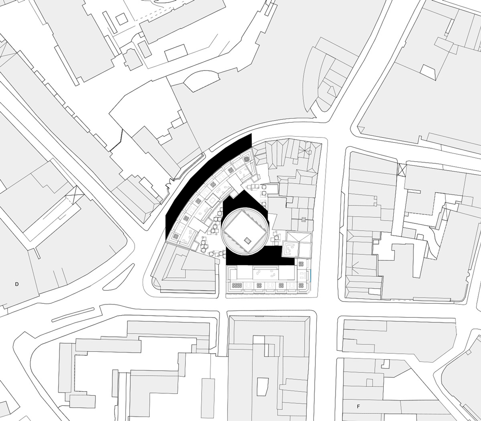 The Aungier Street site is within one of the oldest sections of Dublin formerly part of a historic circular garden with a central church. The garden has now gone but part of the curve remains and can be seen in the plan.
